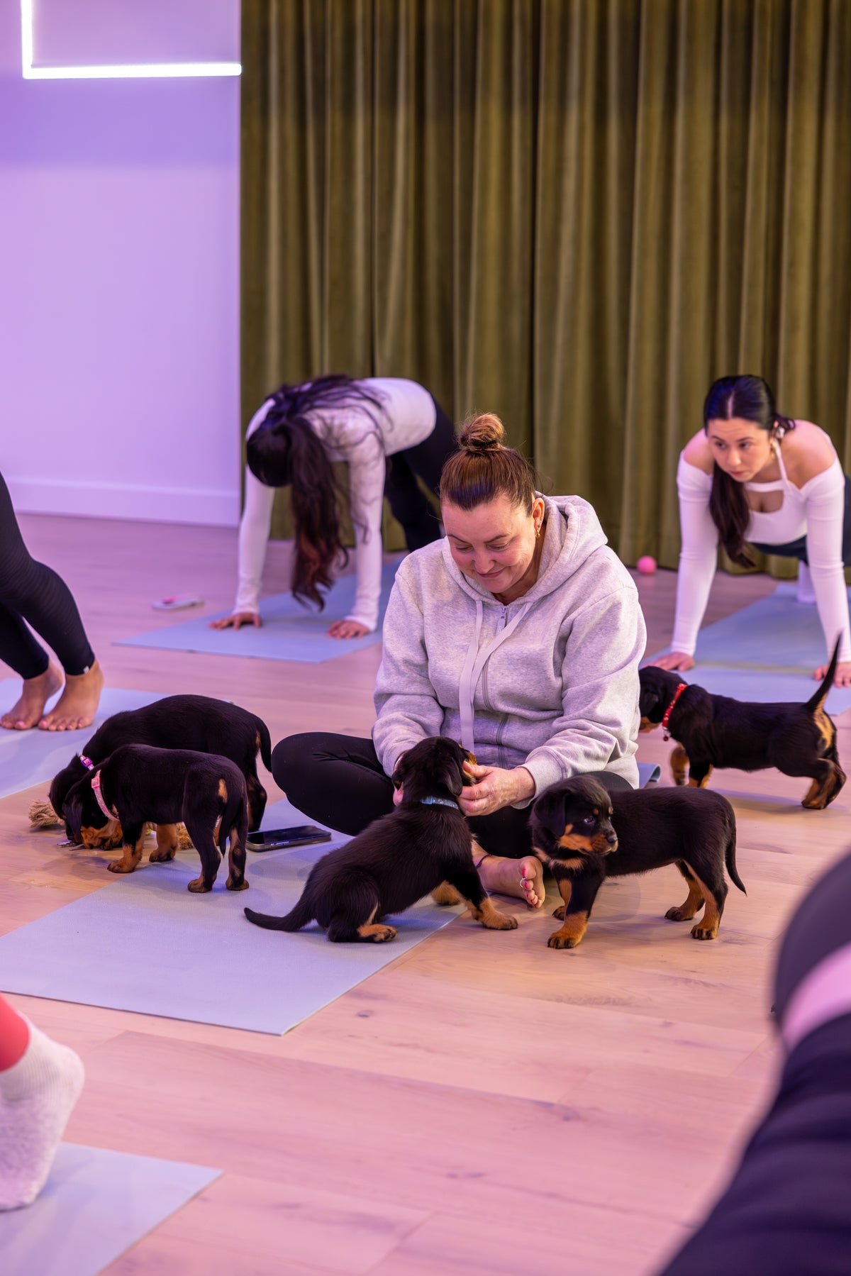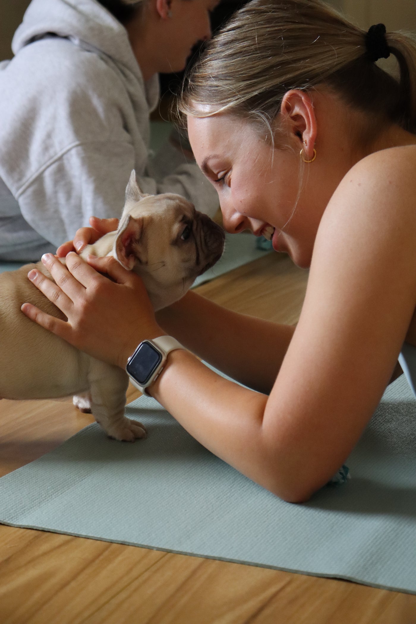 Pooch Yoga is a joyful and calming yoga experience where playful puppies join you on the mat. No need to bring your own dog โ we provide the adorable pups! Enjoy gentle stretches, sweet puppy cuddles, and a boost of happiness as you move through your practice.